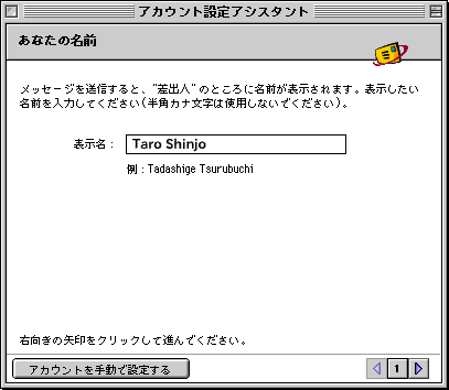 4.[表示名]に氏名を半角ローマ字で入力し、右矢印ボタンをクリックします。