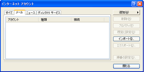 1. Outlook Expressを起動し、[ツール]メニューから[アカウント]を選択し、[メール]タブを