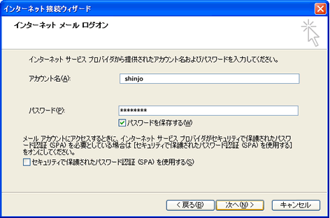 [パスワードを保存する]にチェックを入れ、[セキュリティで保護されたパスワード認証