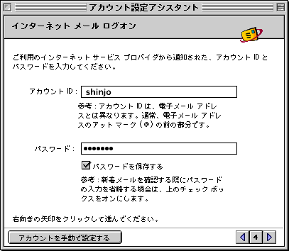 8.[アカウント名]に任意のアカウント名(ここでは「shinjo」)を入力し、[このアカウント