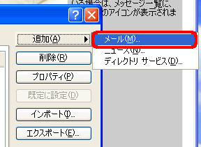 1. Outlook Expressを起動し、[ツール]メニューから[アカウント]を選択し、[メール]タブを