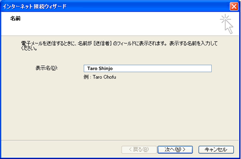 メールが届いたときに相手のメールソフトに表示される名前になります。[次へ]をクリ